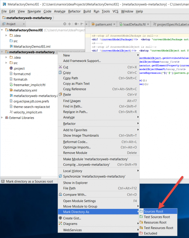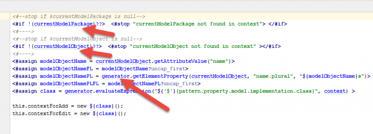 MetaFactory places a number of objects inside the context of Freemarker or Velocity. IntelliJ will need to know about these objects so that the error messages such as the ones shown below will disappear: