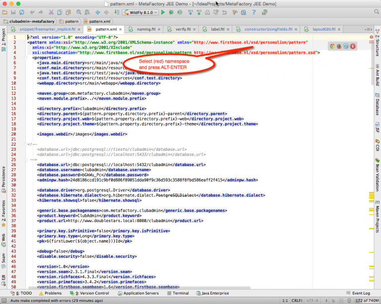 When all of this has been done, the error messages will disappear from the Freemarker en Velocity editor